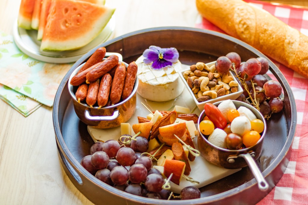 Secondly, bringing a big tray or sharing board is the best way to go so that you can easily lay out for food and make it possible to nibble for hours on end.