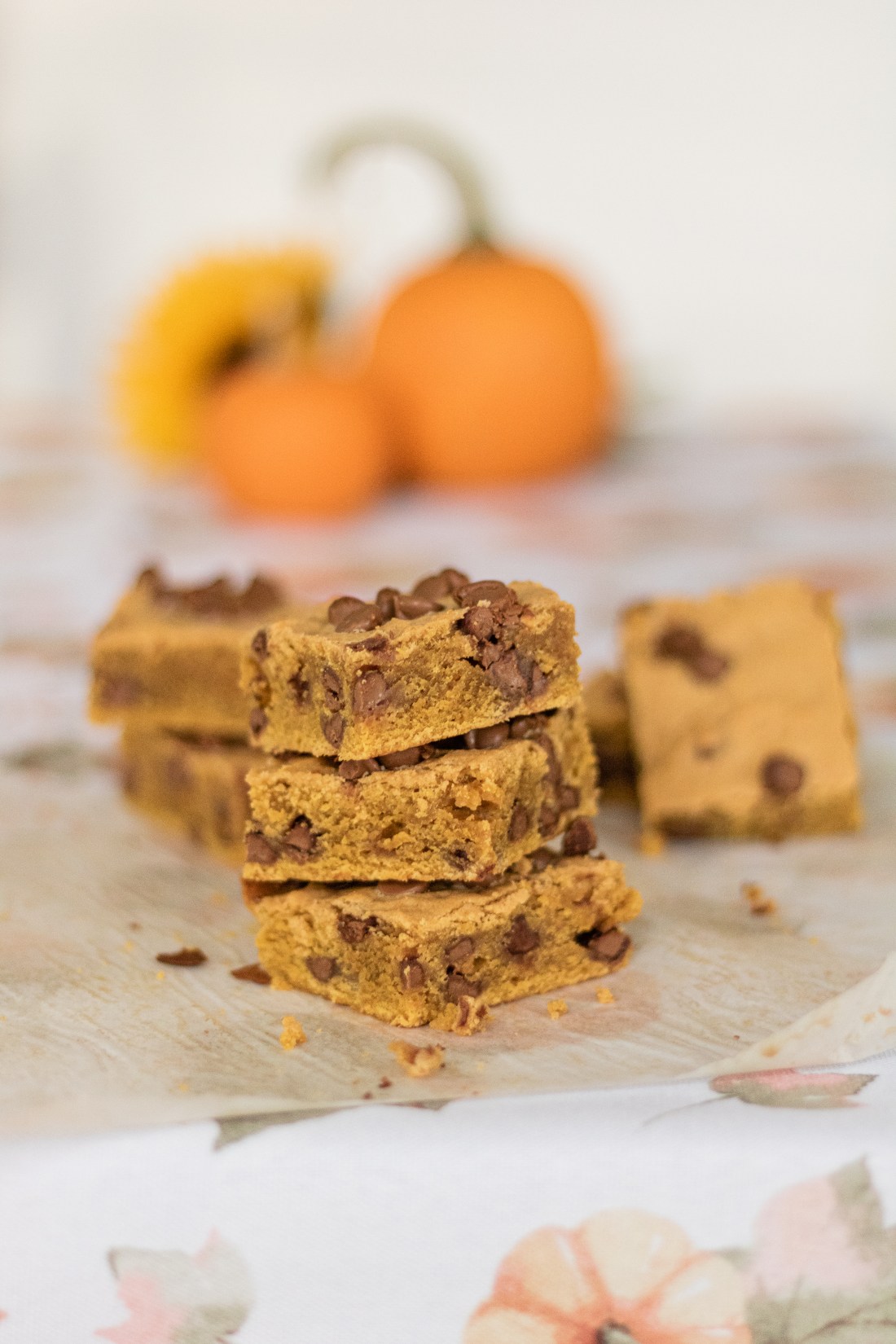Name a better combination besides: blondies + pumpkin spice + brown butter? …. I’ll wait. This recipe is insanely easy and the only somewhat “technical” part is the brown butter. You can skip this and do simple melted butter if you want to make it even simpler – butttt I strongly recommend the brown butter. It’s adds another depth of flavour + makes your house smell like the most incredible bakery so it’s really a win-win if you ask me. Did I say these come together in less than 45 minutes!?