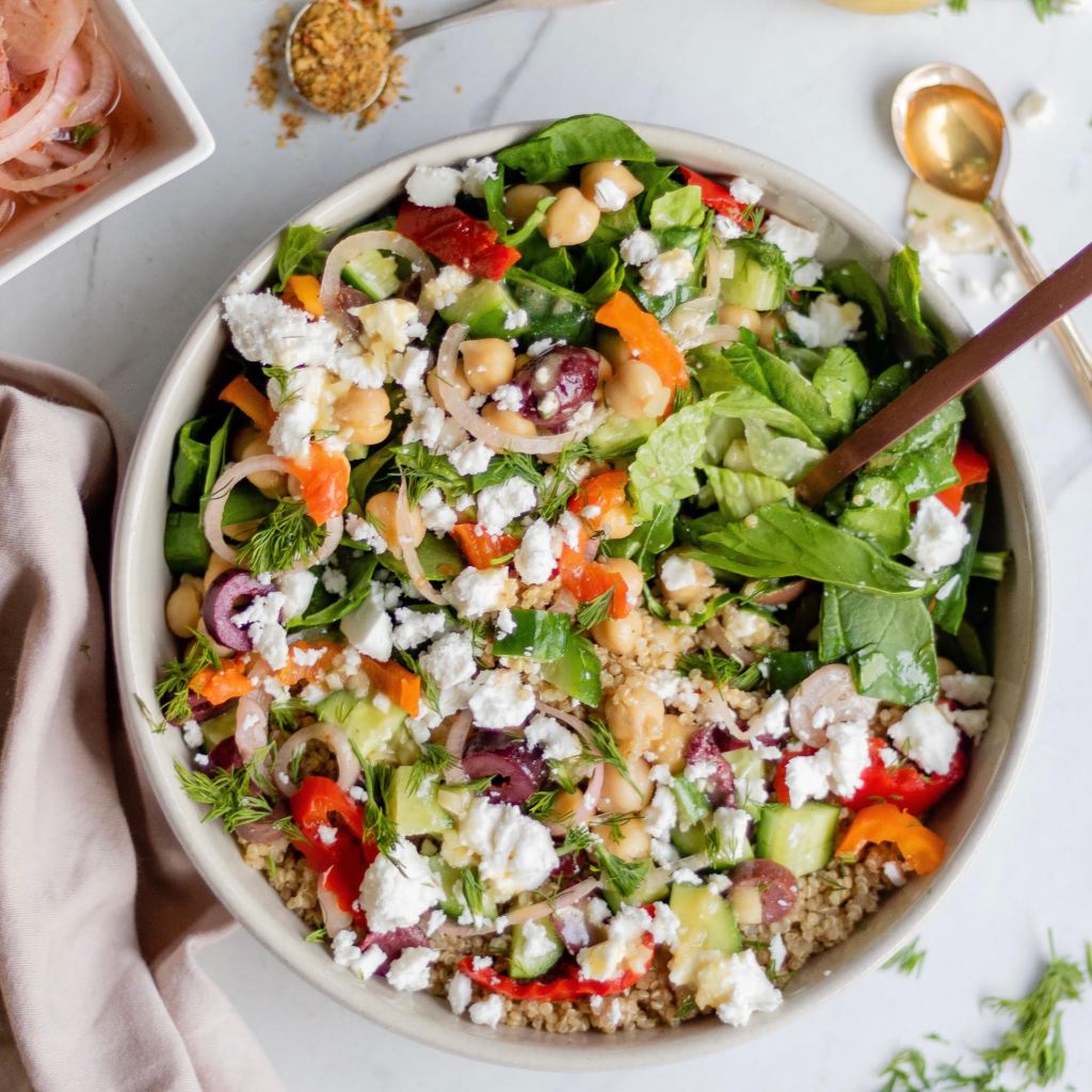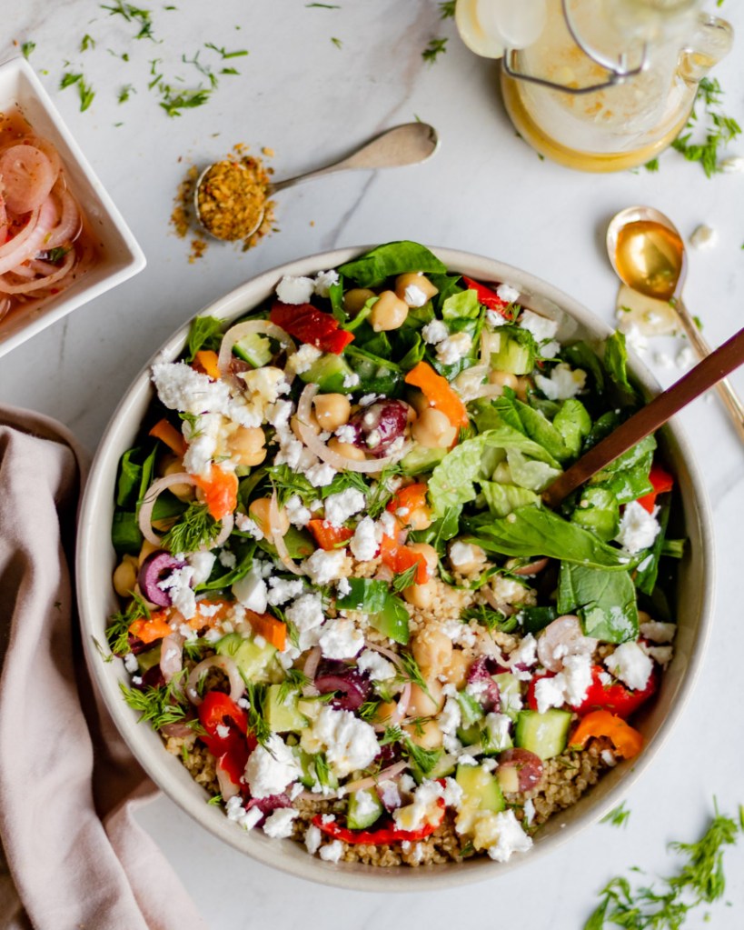 with Greek Quinoa & Champagne-Shallot Vinaigrette
