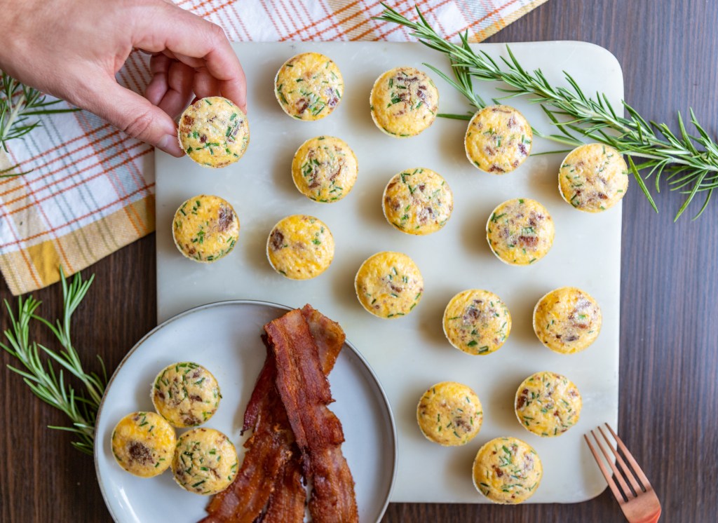 Calling all busy people: this is the recipe for you! These Grimm’s Bacon Egg Bites are truly a morning game changer that can be made ahead of time and aren’t your typical soggy egg bites that you’ve probably tried before (if you’re like me). These babies are actually “SOUS VIDE” with no fancy equipment besides an oven, a pan, some water, a blender and a muffin tray (silicone is my recommendation).