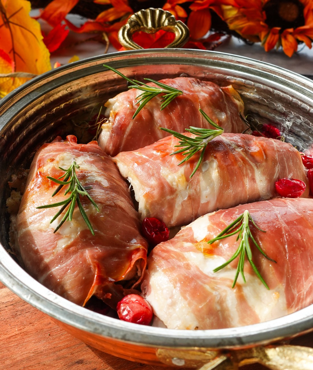 Recipe for Brie-Cranberry Stuffed Chicken wrapped in Prosciutto