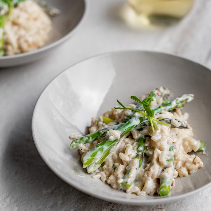 If you’ve never considered yourself a risotto fan before, this creamy spring risotto with asparagus might just change your mind. It’s rich and velvety from generous amounts of goat cheese, perfectly balanced with the brightness of white wine, and finished with tender-crisp asparagus for that fresh spring texture.