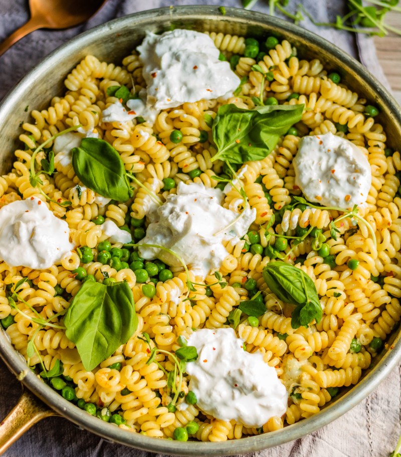 You might think the burrata is the star of this dish but I beg to differ! I consider Fresh local BC Spring Peas to be such a delicacy that I definitely think of them as the star! This Spring Pea & Burrata Pasta is the best way to celebrate the transition from Spring to Summer if you ask me.